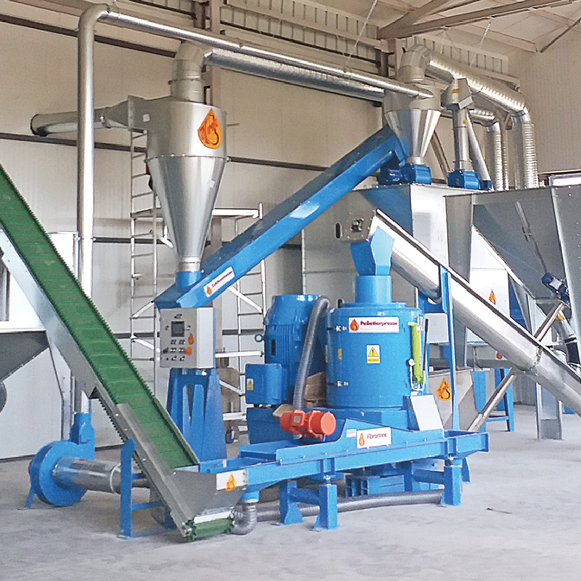 All necessary production steps from bale breaking to grinding, conditioning, pelletising and packaging are integrated. All installations are carried out from a single source. This means that the system is immediately ready for operation after an intensive briefing.